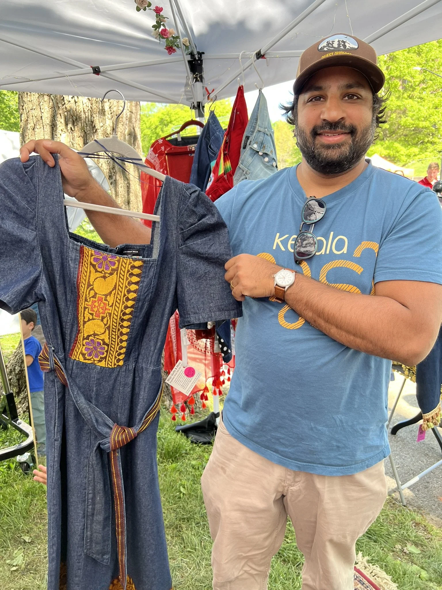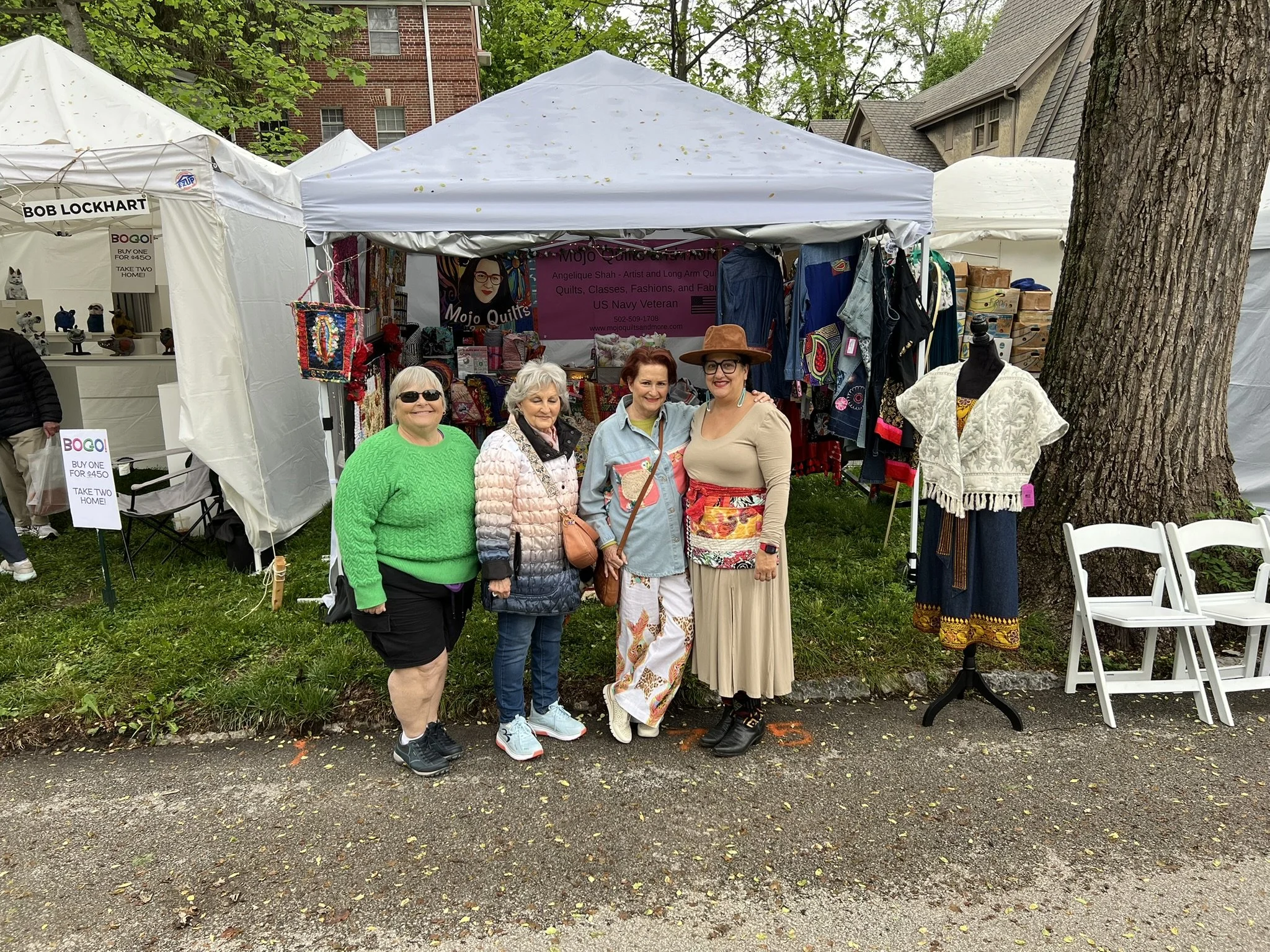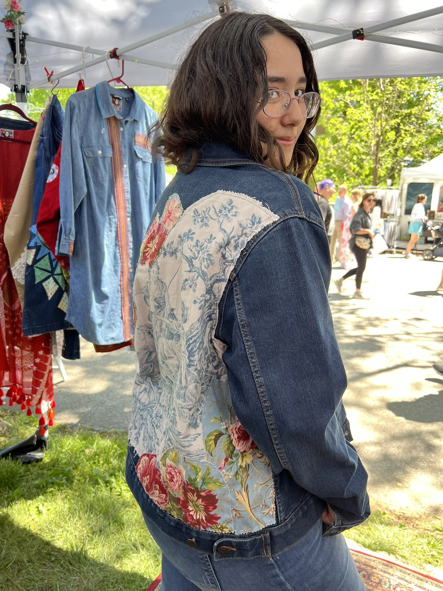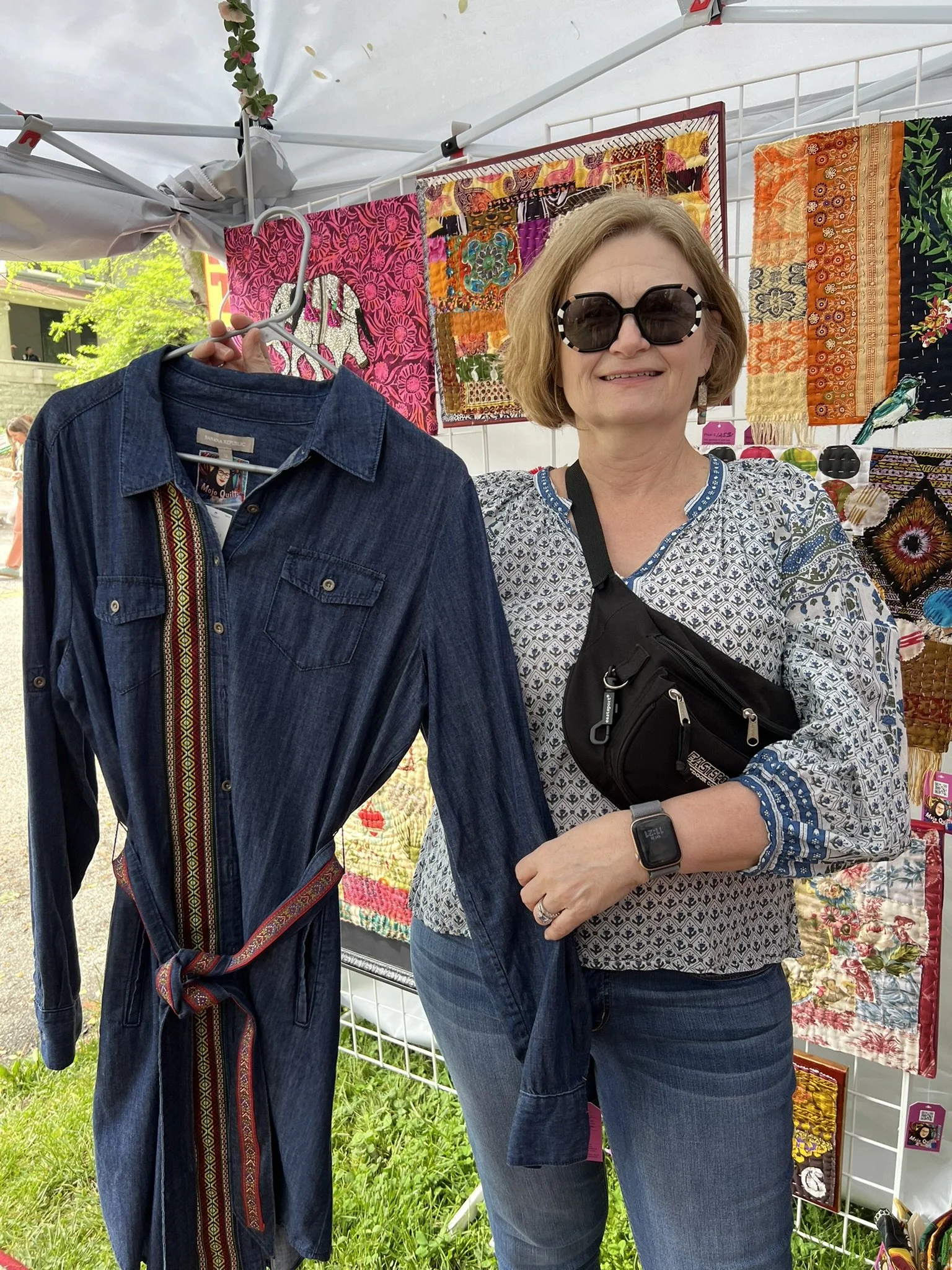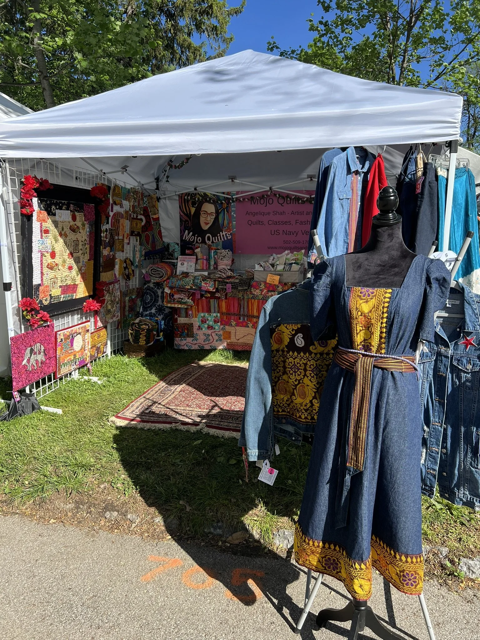 I was juried into the Cherokee Triangle Art Fair on April 26-27. I had a great time reconnecting with friends, customers and meeting new people. I sold several pieces of art, denim jackets, dresses and shirts. Here are a few pics of some of the items I sold.