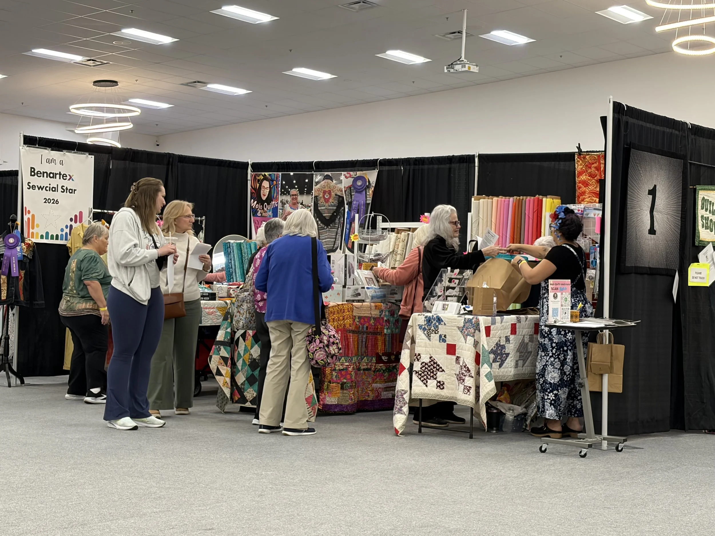 When Maureen took her lunch later in the day, she snapped this pic of my booth. What a great shot of all the customers checking out the quilting goodies.