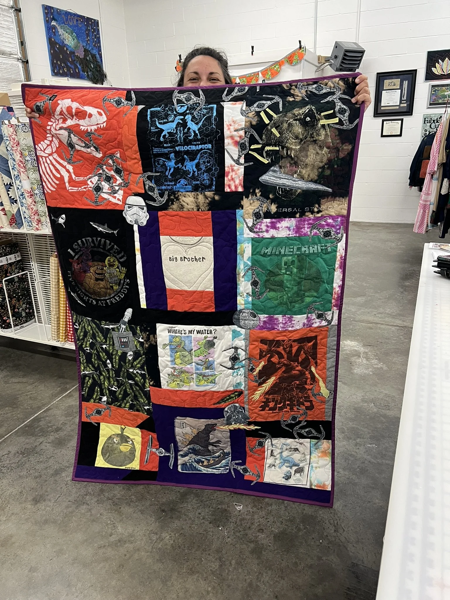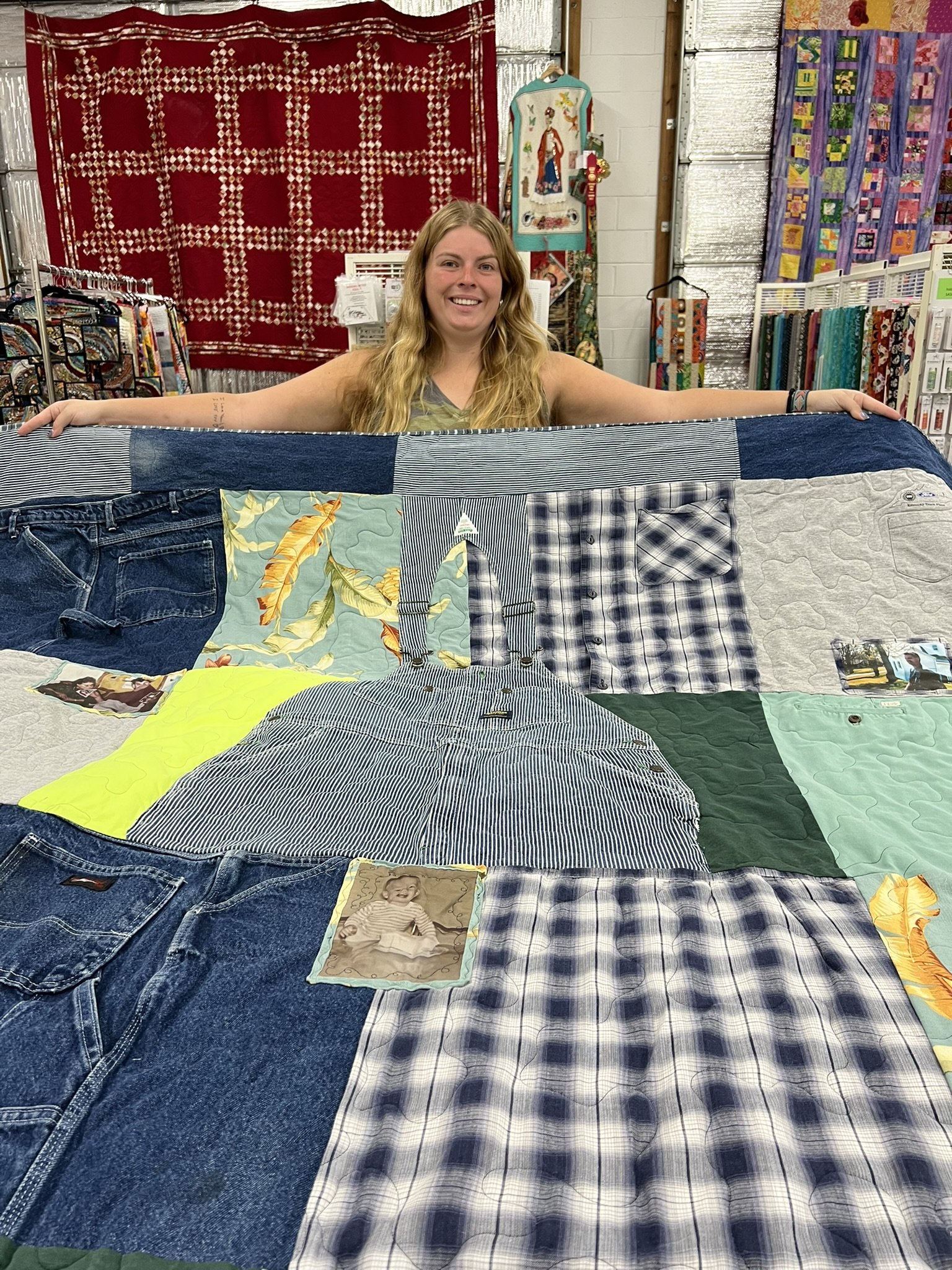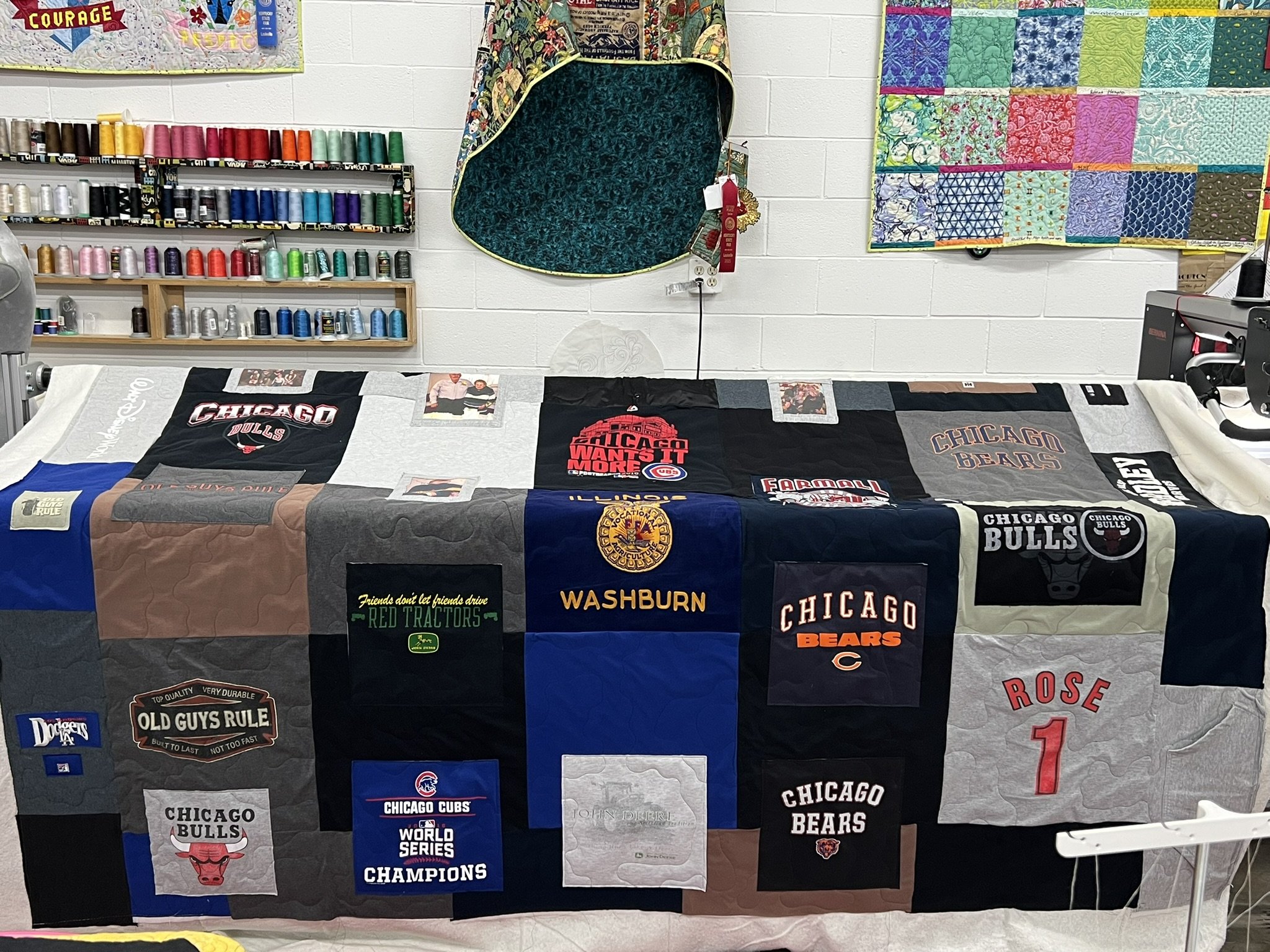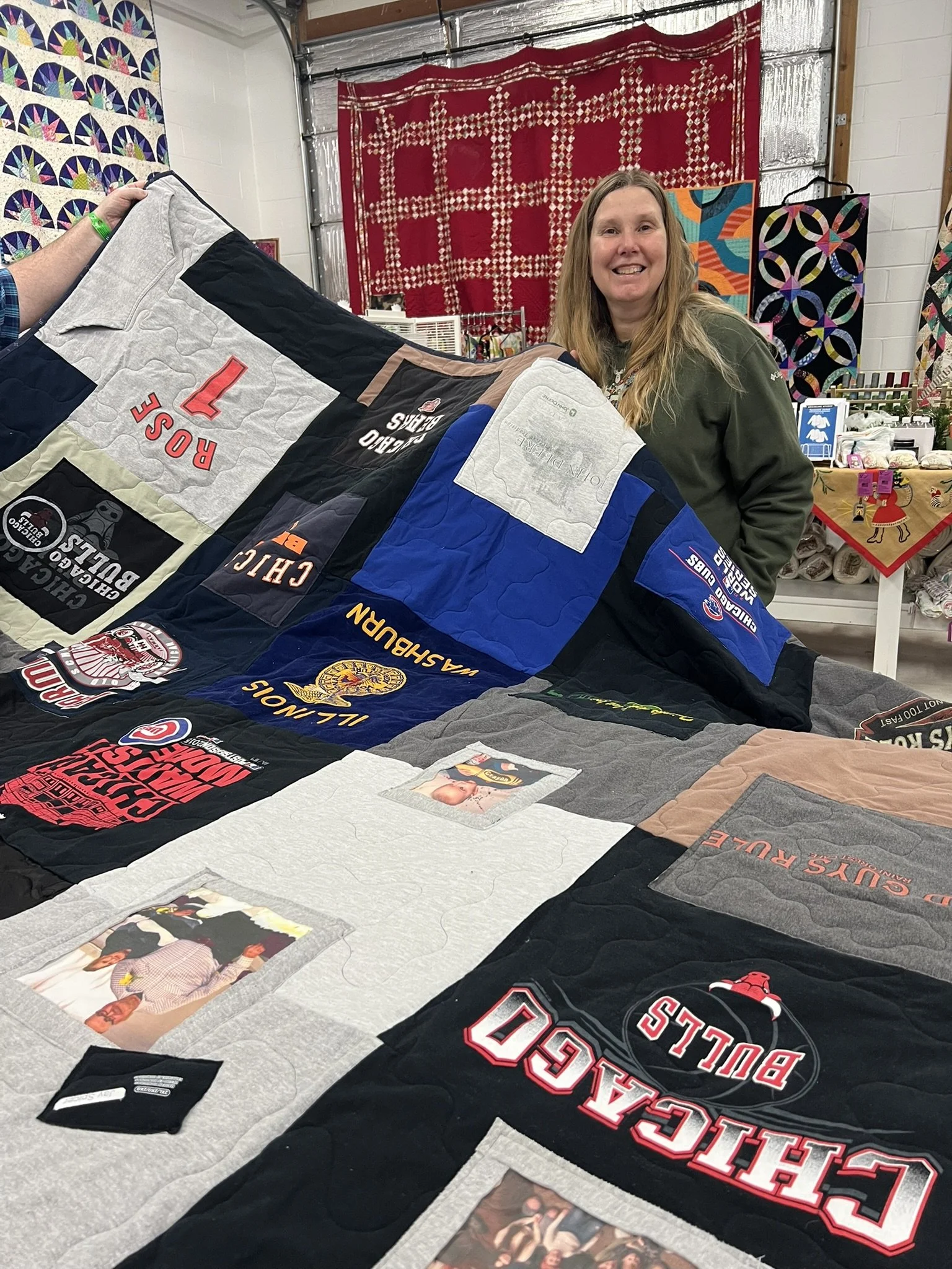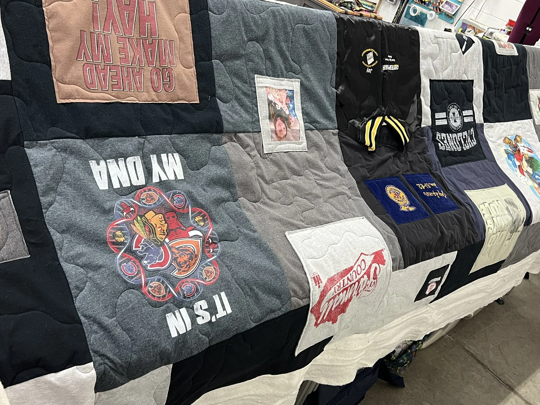 Whether it’s a collection of concert tees, sports jerseys, baby clothes, or a loved one’s garments, I’ll transform your bundle of shirts into a one-of-a-kind quilt that’s designed to last a lifetime. These are deeply personal keepsakes, and I treat each one as a true collaboration between you and me.